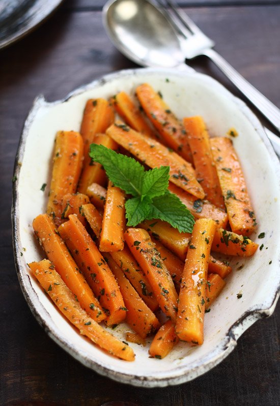 Carrots with Coriander, Cumin and Mint. Tender cooked carrots tossed with a coriander, cumin and fresh mint dressing.